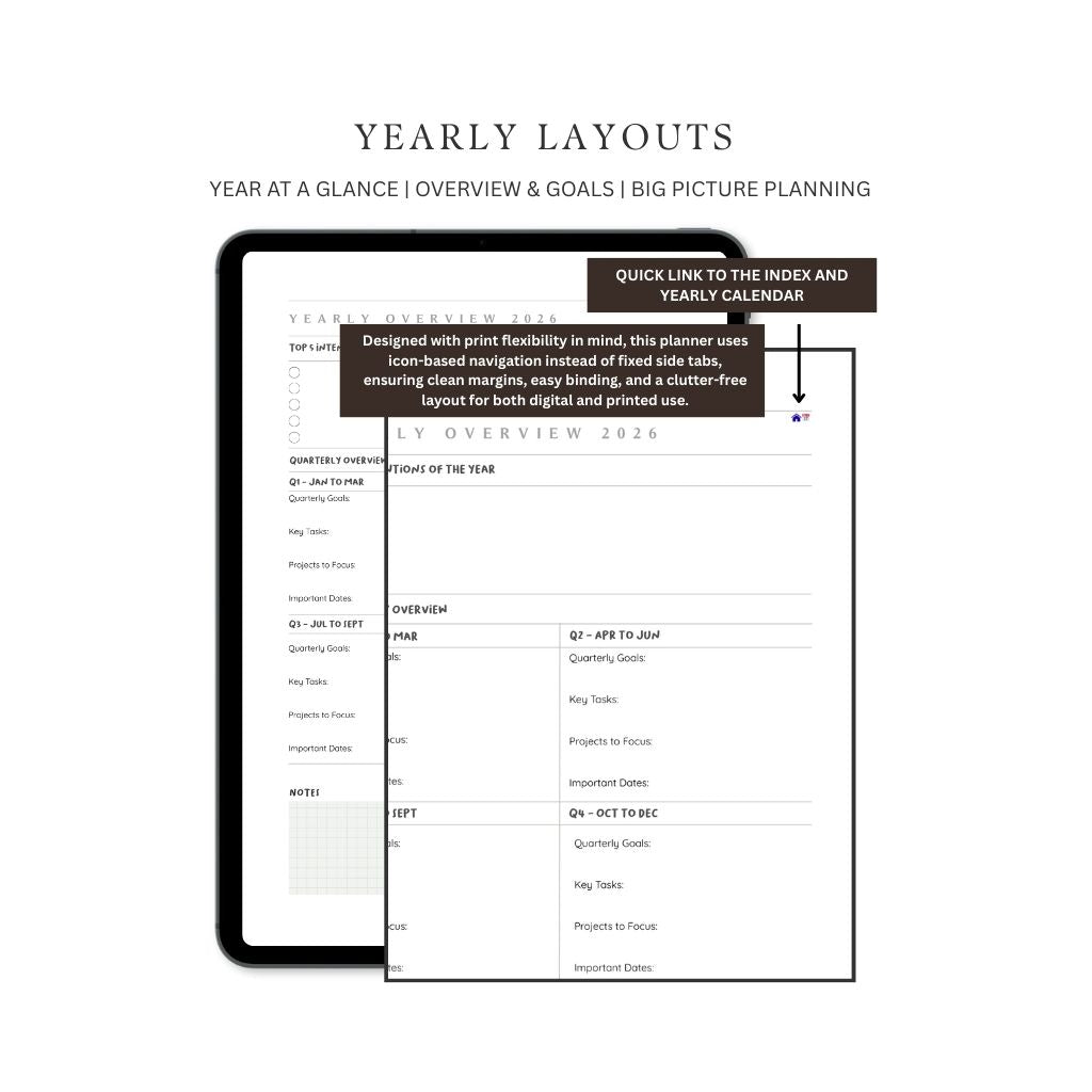 - Designed with print flexibility in mind, this planner uses icon-based navigation instead of fixed side tabs, ensuring clean margins, easy binding, and a clutter-free layout for both digital and printed use.